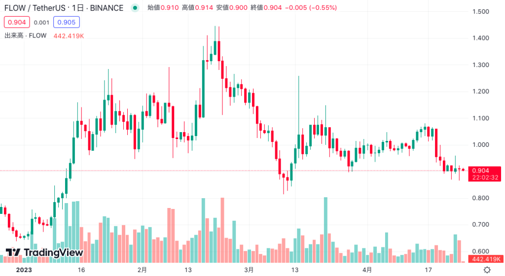 上記の画像は、2023年1月以降のFlow(FLOW)の価格推移を表したチャートです。