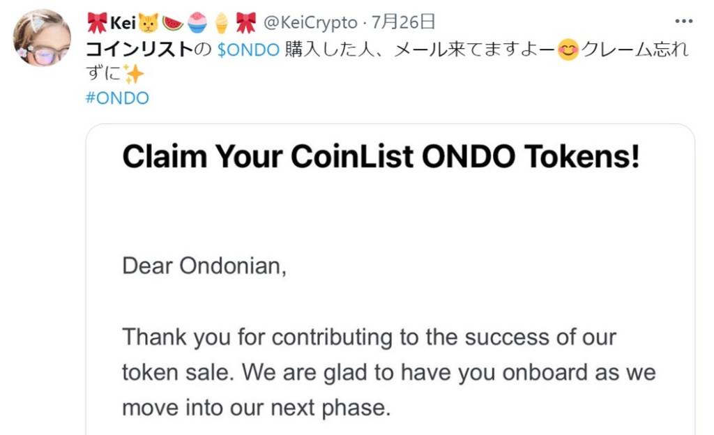 2022年の5月には、ONDO(オンド)というプロジェクトのトークンセールが行われました。