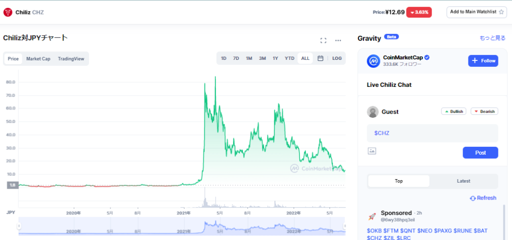 チリーズは、スポーツ選手との交流を目的とした「ファントークン」が発行できるプラットフォームのガバナンストークンです。