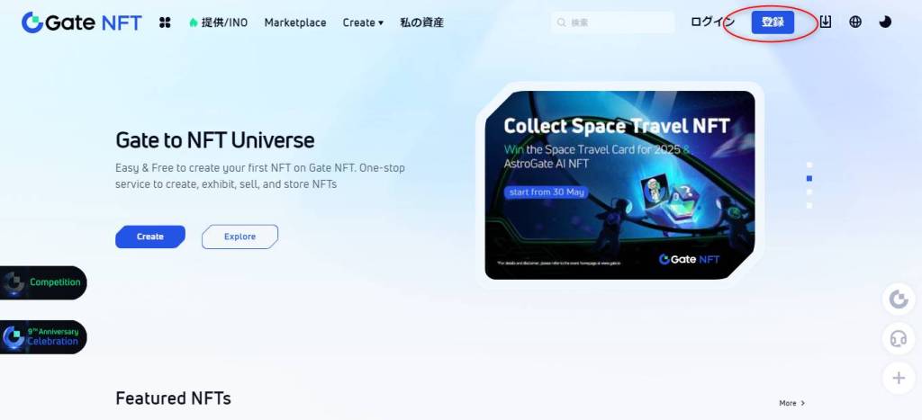 ゲートアイオーの口座を開設するには、最初に以下の公式サイトへアクセスして「登録」を選択しましょう。