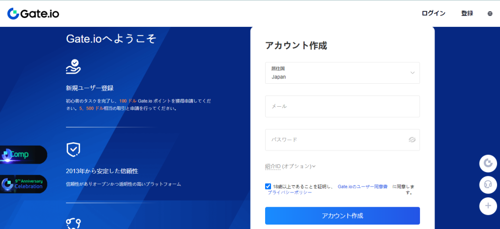 仮想通貨取引所Gate.io(ゲートアイオー)の口座開設方法