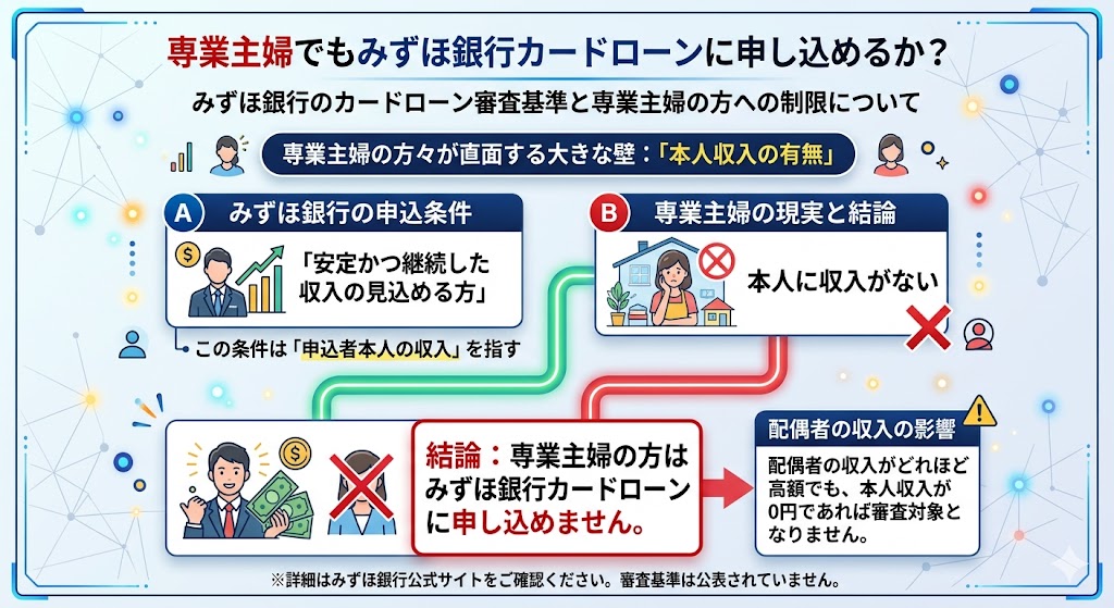 特に専業主婦の方は、本人収入がない限り申し込みができないという仕様上の制限がある点に注意が必要です。収入がない状況で至急融資が必要な場合は、配偶者の収入で審査が可能な他行(イオン銀行や楽天銀行等)を検討するのが現実的な選択となります。