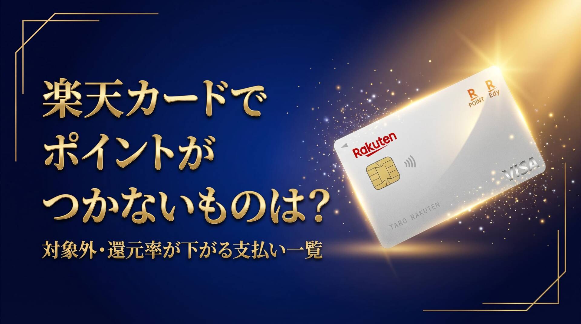 | ポイント進呈対象外 | カード年会費、楽天ETCカード年会費、各種手数料、キャッシング利用分、WAON・nanaco・au PAYなどへの一部チャージ、楽天キャッシュチャージ | 楽天カードを使っても、カード利用獲得ポイントはつきません。 |