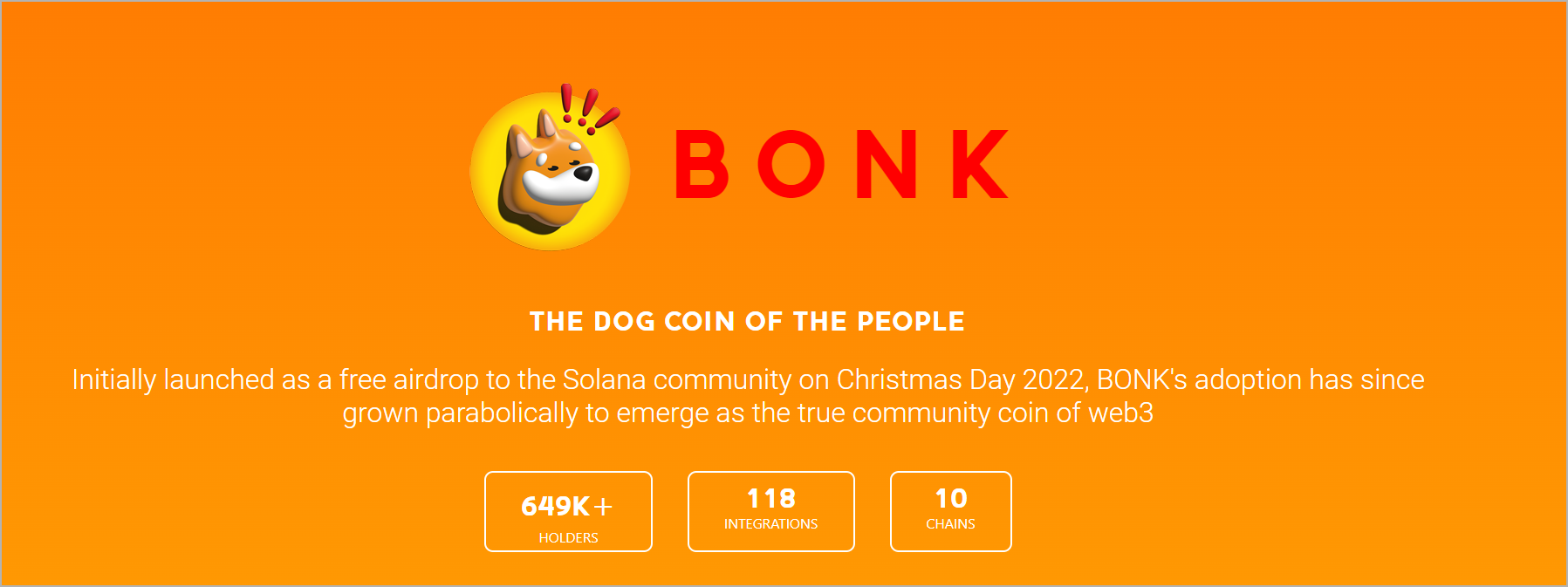 Bonkはソラナブロックチェーンのエコシステムで使われるコミュニティの中心的なコインになるように活動を行っています。