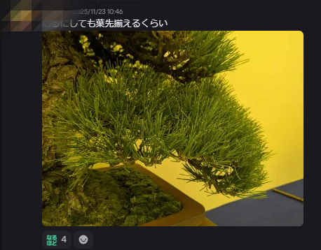 投機的な考えで購入する方も多いと思いますが、盆栽コミュニティを楽しんでいる方が多いようです。マーケティングを担っているBONSAI NFT CLUBのDiscordを見ると、盆栽師の方が盆栽の手入れについて教えてくれていたりします。