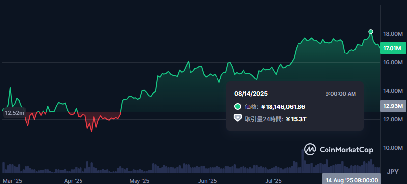 特に、2018年代から現在までの間、ビットコインは何度かの急騰や調整を経ながらも全体的に価格が上昇。2025年8月14日には過去最高値を更新、1,800万円を超えました。