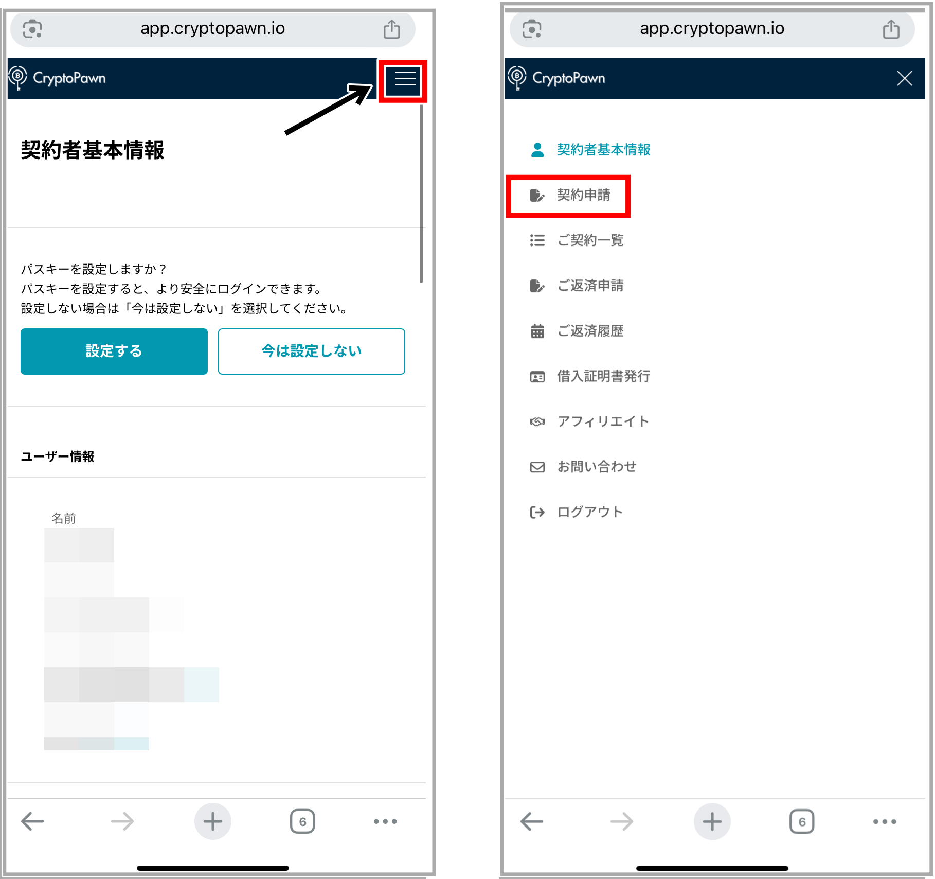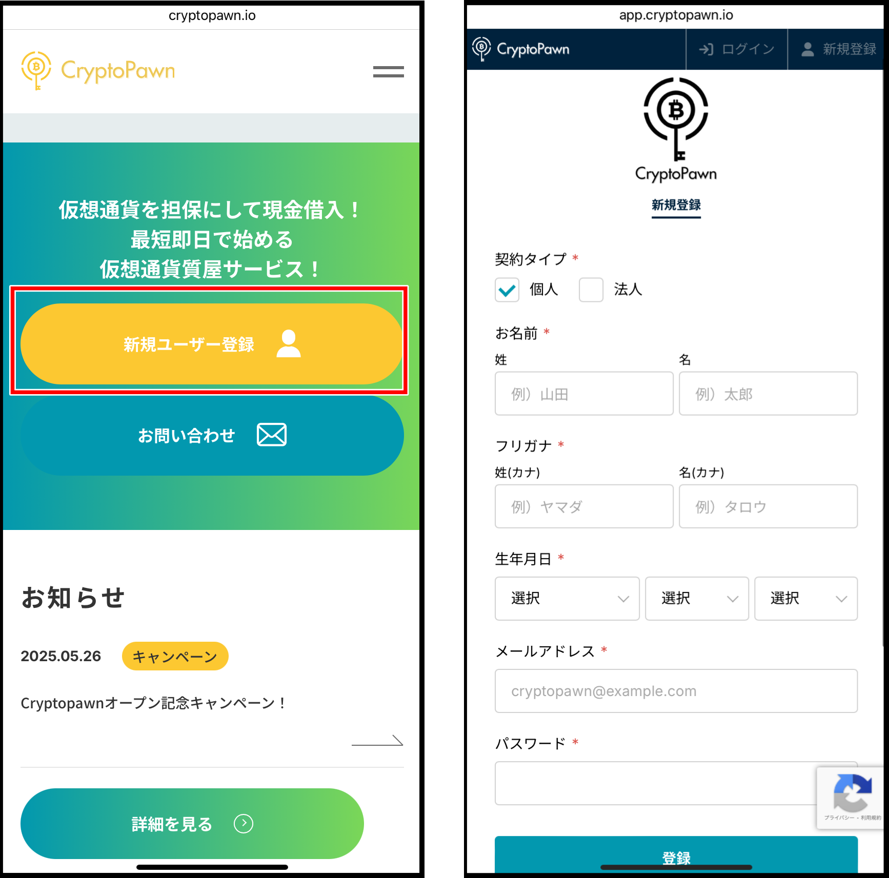 CryptoPawnの公式サイトでは、貸金業登録番号や貸金業協会への加入状況に関する記載が確認できません(2025年5月時点)。