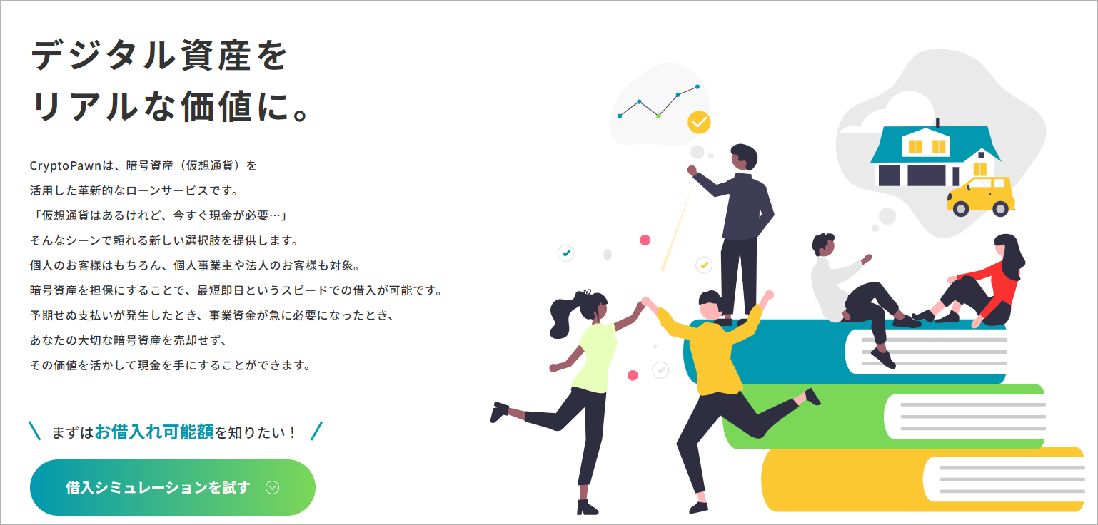 CryptoPawnは暗号資産を担保に日本円の融資を受けられるサービスです。