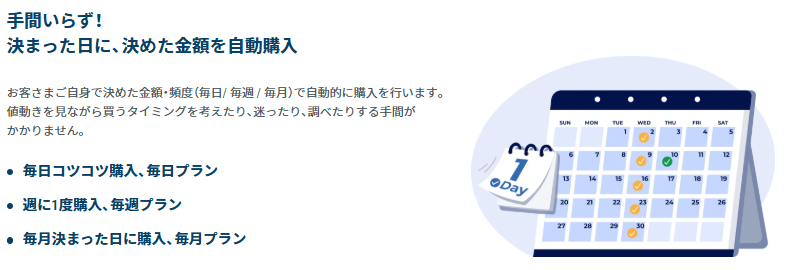 暗号資産の積み立ては、他の金融商品の積み立てと全く同じです。