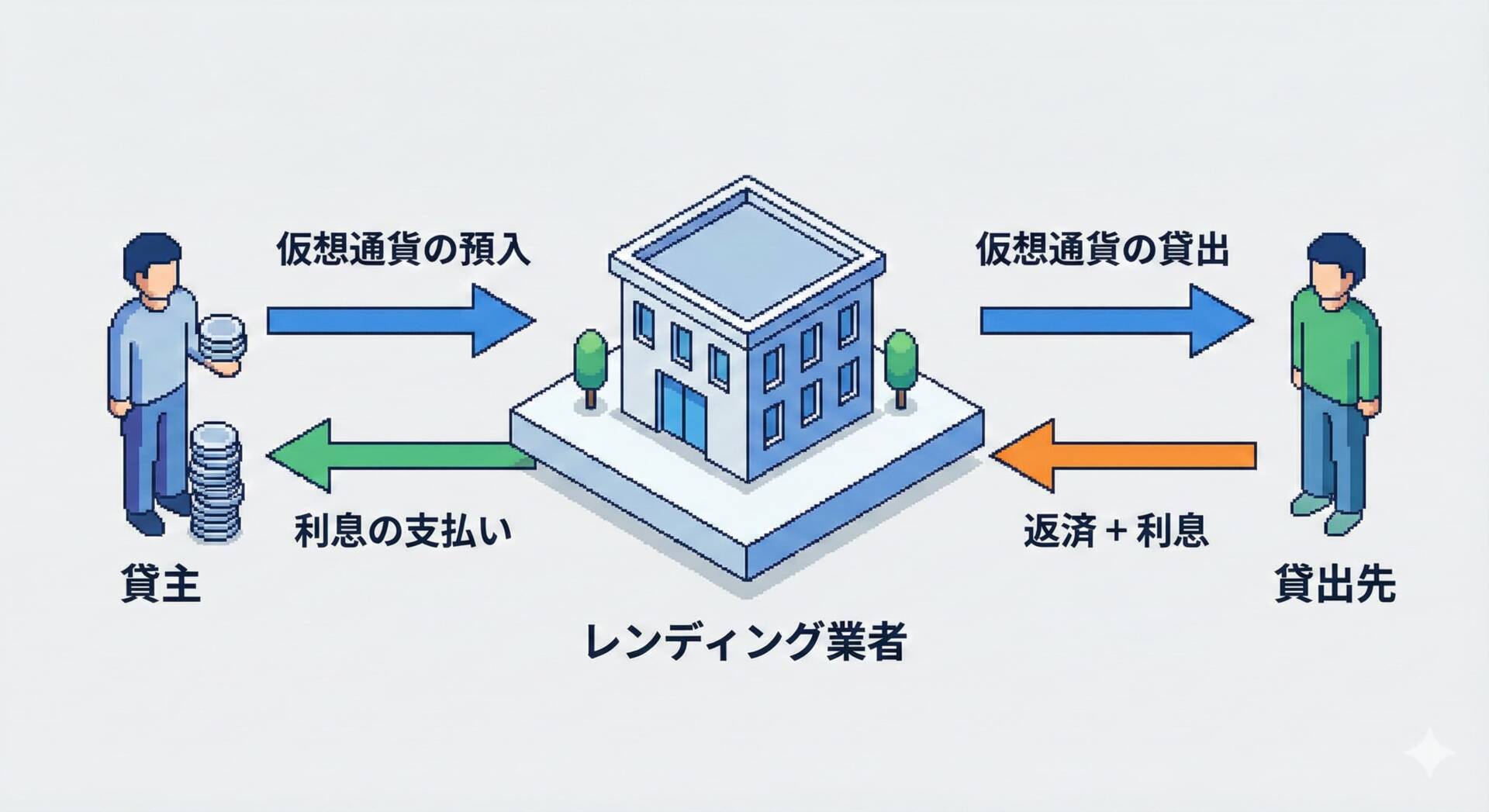 これは、レンディング業者がユーザーの仮想通貨を使って別の運用(例:他ユーザーや機関への貸し出し、DeFi活用など)を行っているためです。