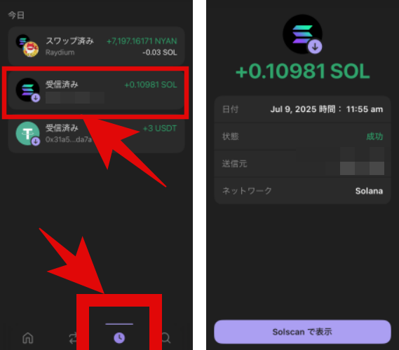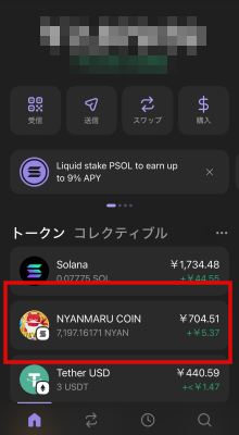 無事にPhantomウォレットに入金されると、以下のような画面が表示されます。