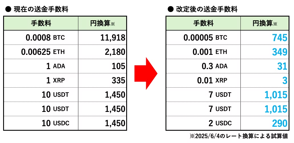 | USDT・USDC | 最低貸出数量:350 (約5.0万円) 最低変換枚数:100 (約1.5万円) 返還手数料:2 (約290円~1,015円) |