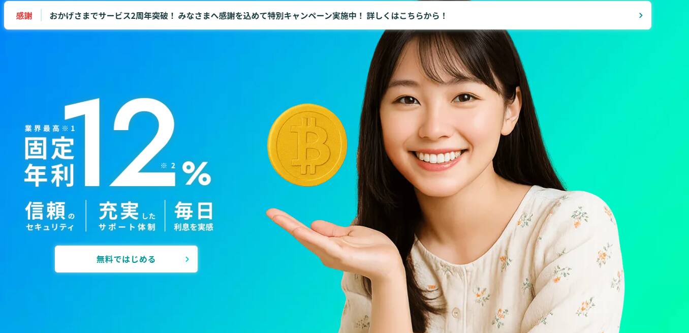 暗号資産運用サービスとしては高めの利回りが設定されています。