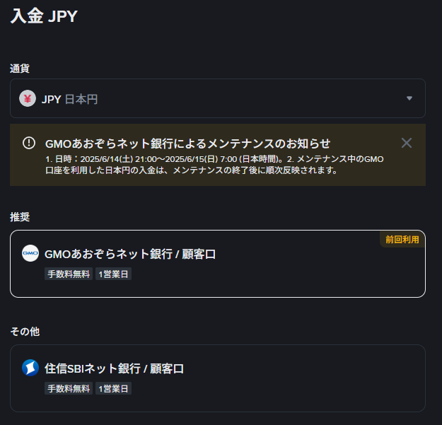 国内取引所に日本円を入金する
