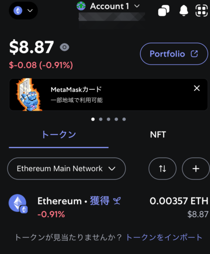 少し待つとメタマスクにイーサリアムが着金しているはずです。