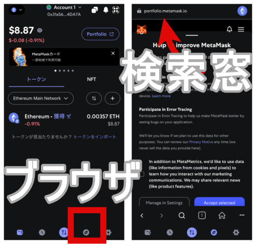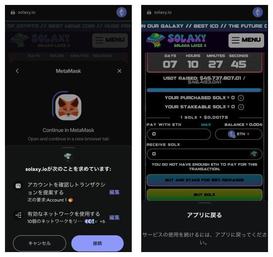 メタマスクブラウザでソラクシー公式サイトに接続