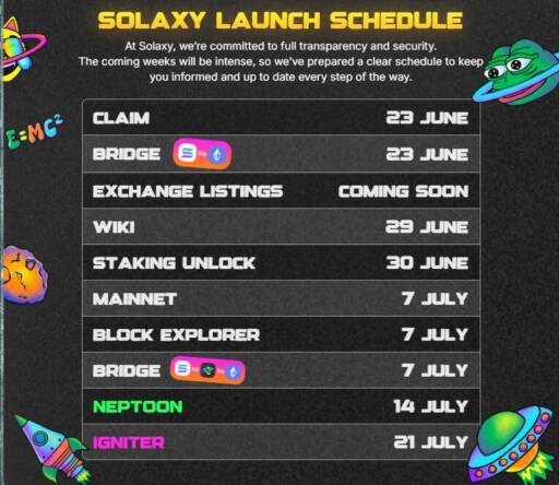 ややこしいですが、ソラクシーは6月23日にどこかの取引所に上場しており、その後Solaxyチェーン上にNEPTOONというDEXが公開されるということです。おそらくソラクシーはNEPTOONでも上場することと思われます。