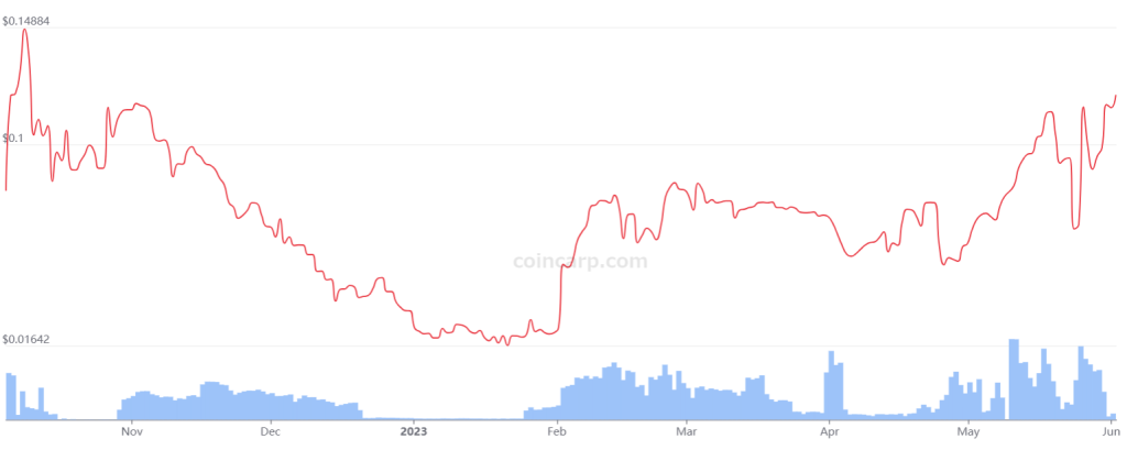 PROJET XENOリリース日の2023年5月10日に、GXEは0.09ドル(約13円)まで上昇しています。