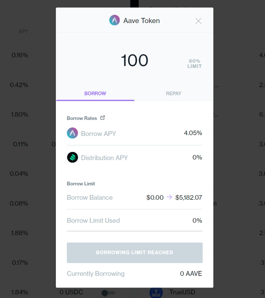 ※担保が足りない場合は、画像のように「BORROWING LIMIT REACHED」と表示されます。