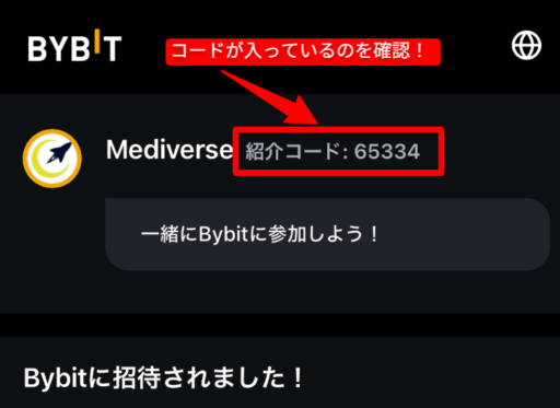 プロモーションコードは「65334」です。Bybitに新規登録する際、紹介コードの欄に入力してください。