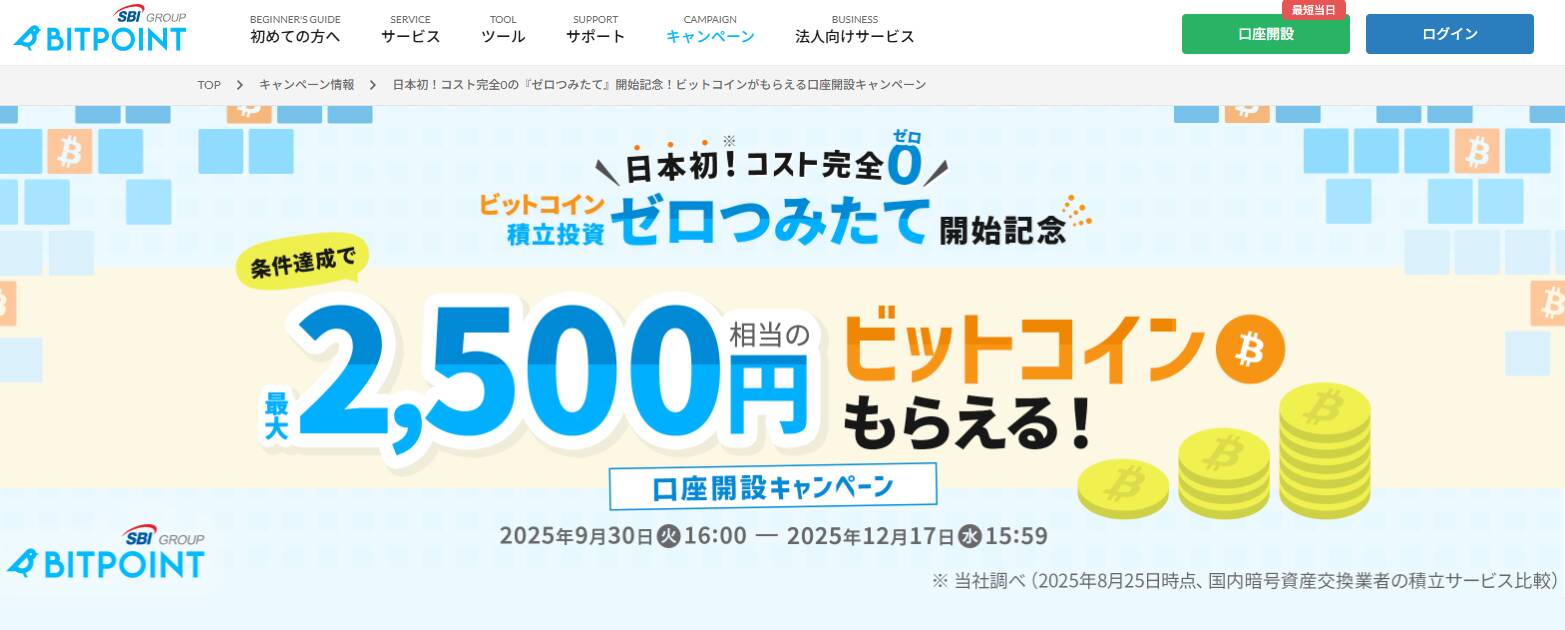 →日本初!コスト完全0の『ゼロつみたて』開始記念!ビットコインがもらえる口座開設キャンペーン - 楽天ウォレット:新規口座開設&取引で500楽天ポイントプレゼント