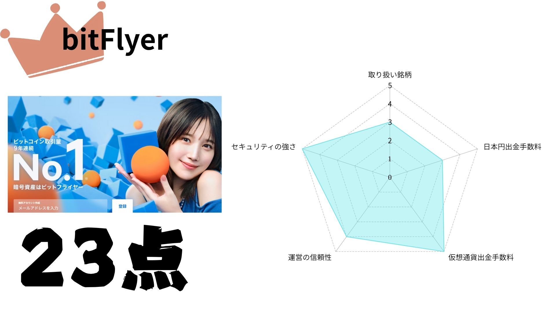 どの取引所が優れているのか、以下の6項目でそれぞれ5点満点で採点してランキングにしてみました。