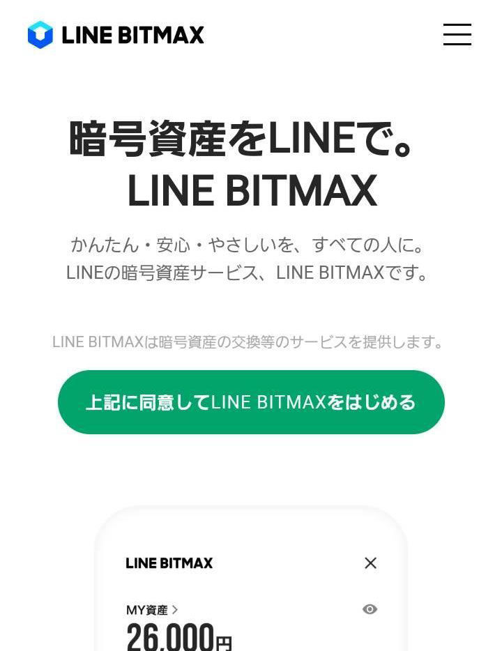 まずは、LINE BITMAXの公式ホームぺ―ジに移動します。下記リンクから移動できます