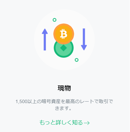 そのほか現物や先物、ステーキングにコピートレードと、仮想通貨の取引手法で一通りは揃っています。