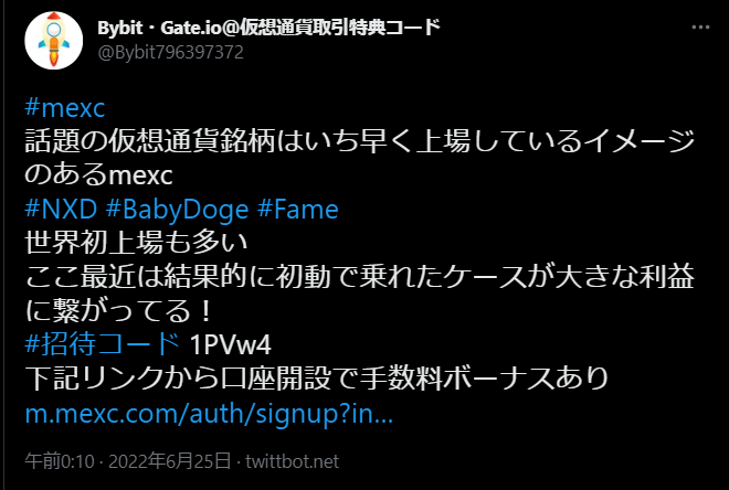 「MEXCの招待リンク」から飛べば招待コードは入力済みになります。よろしければ活用ください。