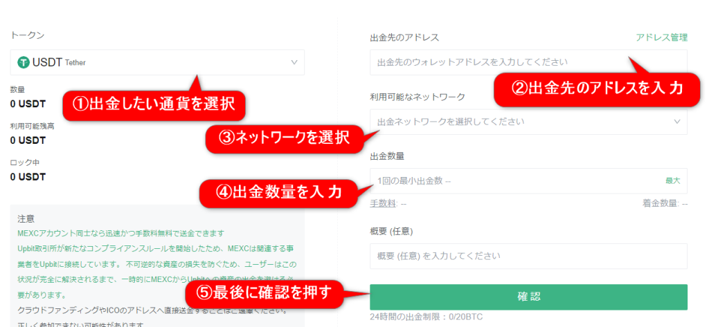MEXCの出金方法は別記事で解説しました。出金するときは記事を参考に取り組んでみてください。