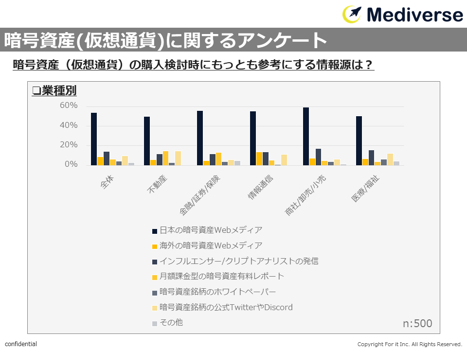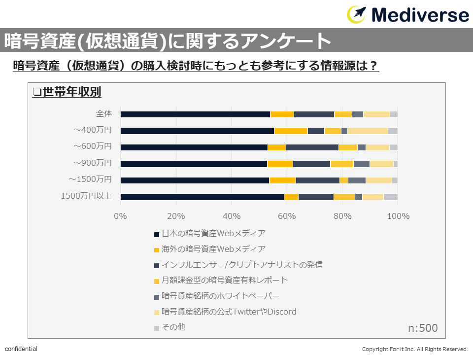 今回のアンケート調査結果では、いずれの切り口でも、日本国内においては「日本の暗号資産(仮想通貨)Webメディア」が有力情報源となっていることが判明いたしました。