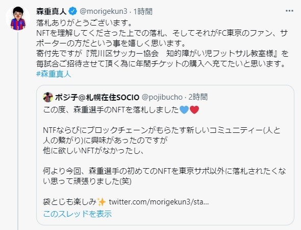そうやってNFTを巡回させることによって森重選手のためにもなれれば幸いです!