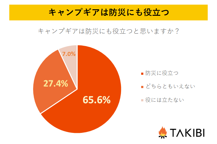 今回、全国の10代~60代のキャンプ経験者に「防災」について調査した結果、6割の人が災害時にキャンプ用品を活用していると回答しました。