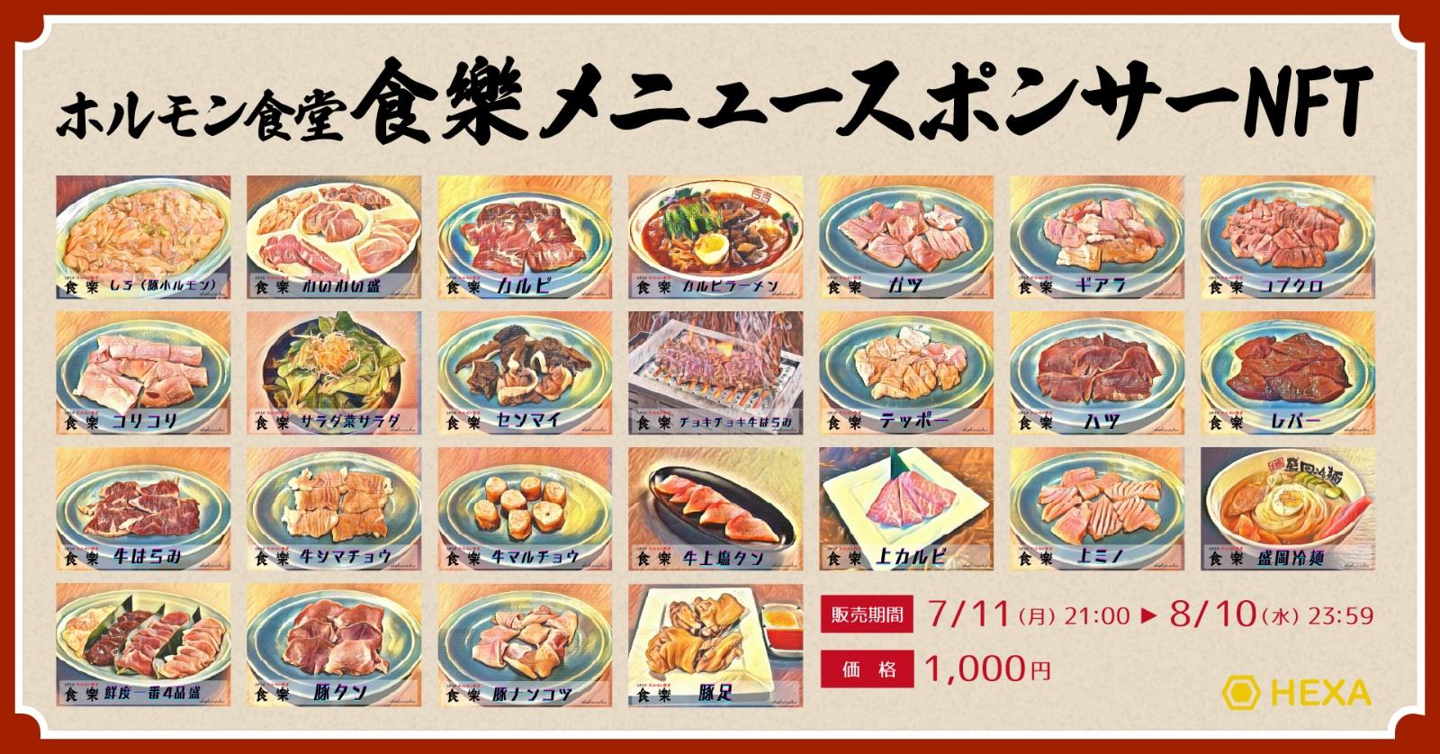 【焼肉メニューNFT】ホルモン食堂『食樂』が「スポンサーNFT」をSNSマーケティング施策として活用