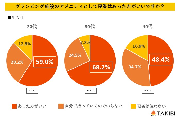 年代別で見ると20代・30代・40代・50代は「あった方がいい」と思う方が多く、60代以上では「自分で持っていくのでいらない」と思う方が多く、4割程という結果になりました。