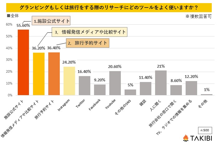【質問:グランピングもしくは旅行をする際のリサーチにどのツールをよく使いますか?】