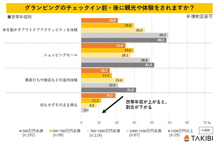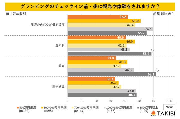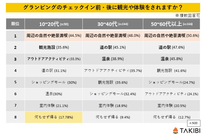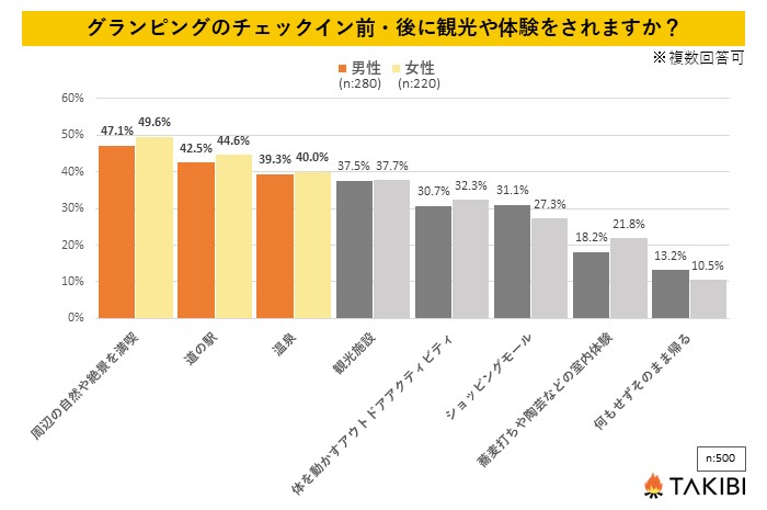 【質問:グランピングのチェックイン前・後は体験や観光をされますか?】