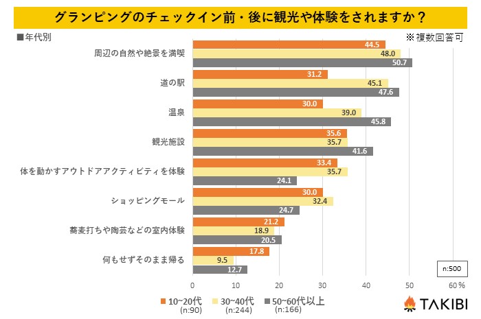 年代別に見ても「周辺の自然や絶景満喫」をされる方が1番多いという結果になりました。