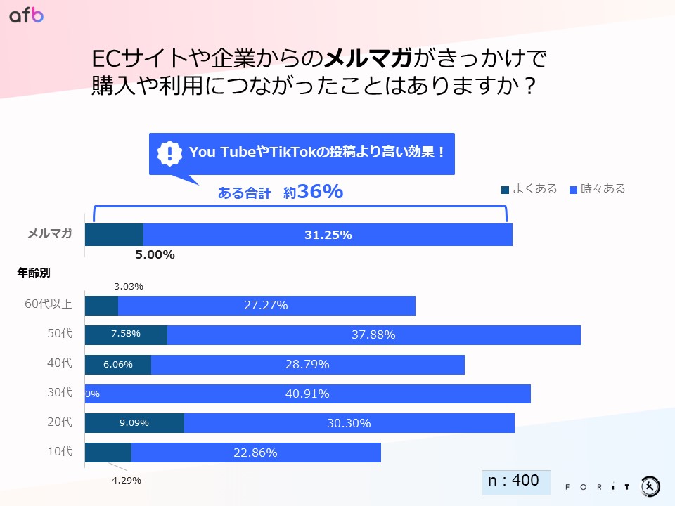 メルマガの効果はYouTubeやTikTokよりも高いということがわかりました。