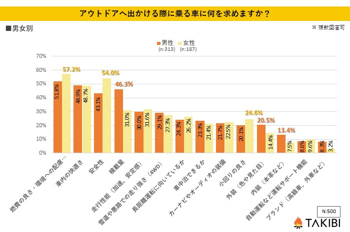 【質問:アウトドアへ出かける際に乗る車に何を求めますか?】