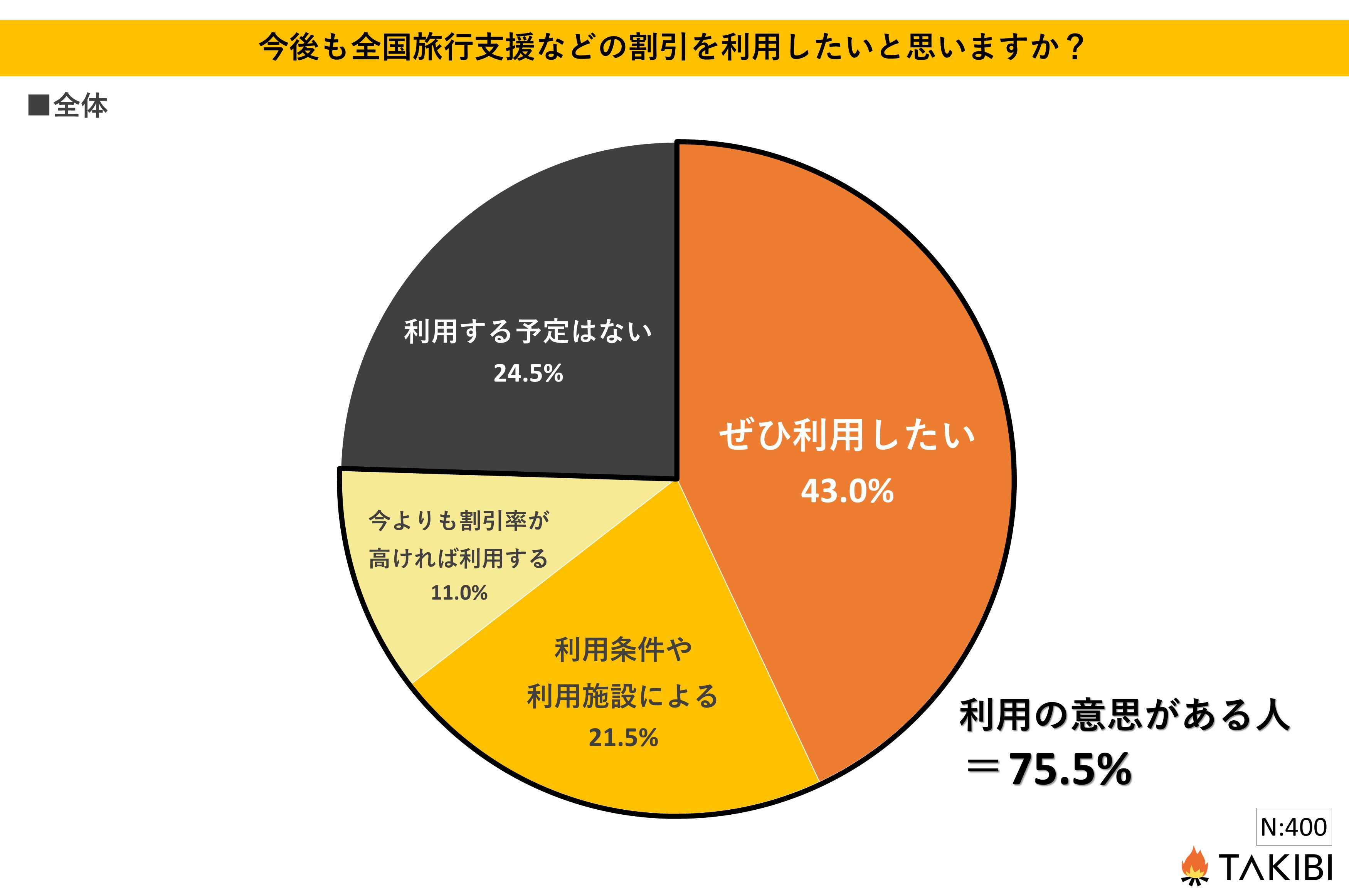 全国旅行支援、今後利用意思のある人は75.5%に!TAKIBIによる調査実施