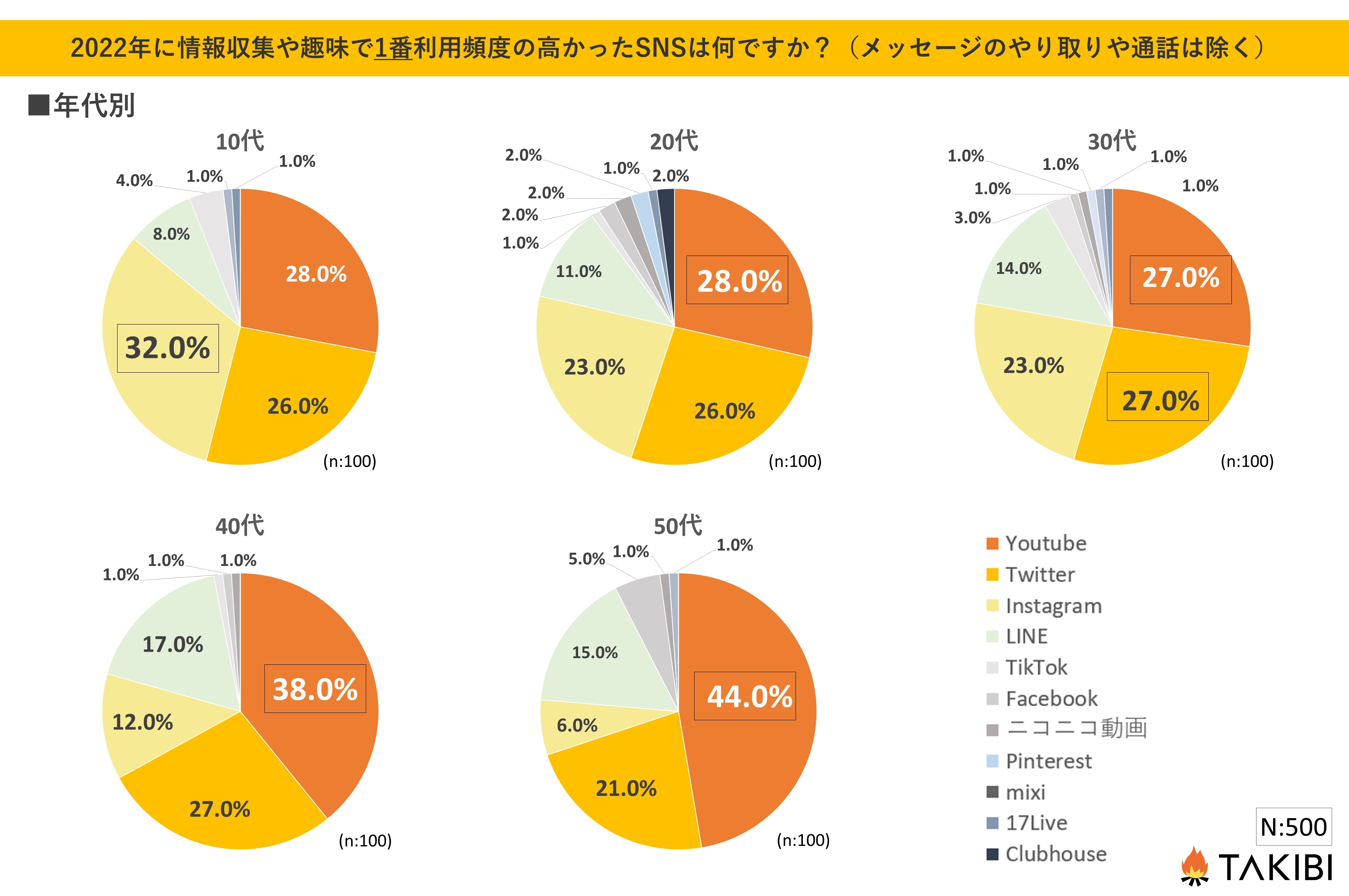 サンプル数:500人(各年代100人ずつ)