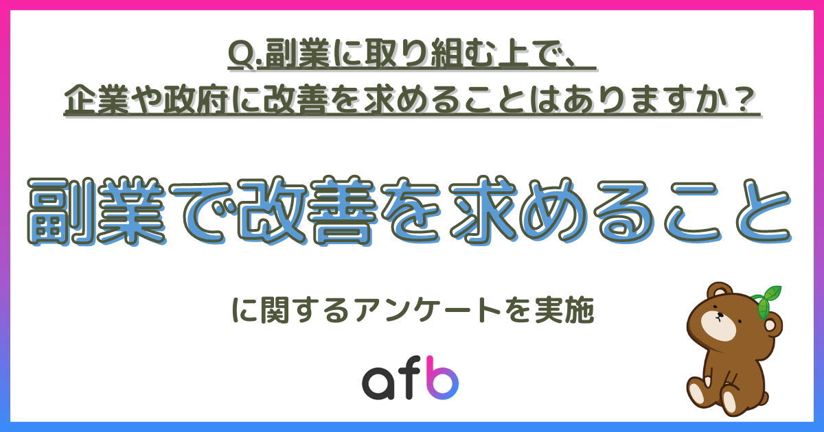 【質問1:副業に取り組むうえで、勤めている企業や政府に改善を求めることはありますか? 】
