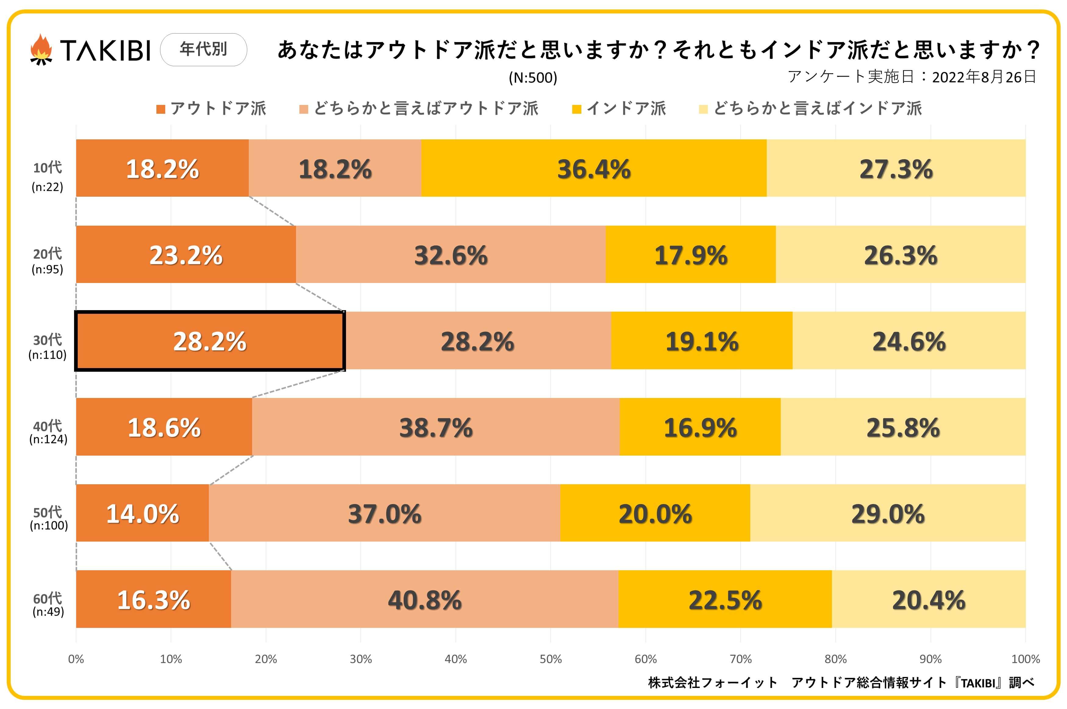 以前実施した、「あなたはアウトドア派ですか?インドア派ですか?」というアンケート結果を見ると、比較的予算設定が高めの「5,000円~10,000円」を選択した人が多かった30代では、「アウトドア派」だという人が最も多くなりました。アウトドアの代表とも言えるBBQに予算を多めに割こうと考える人が多くなったのかもしれません。