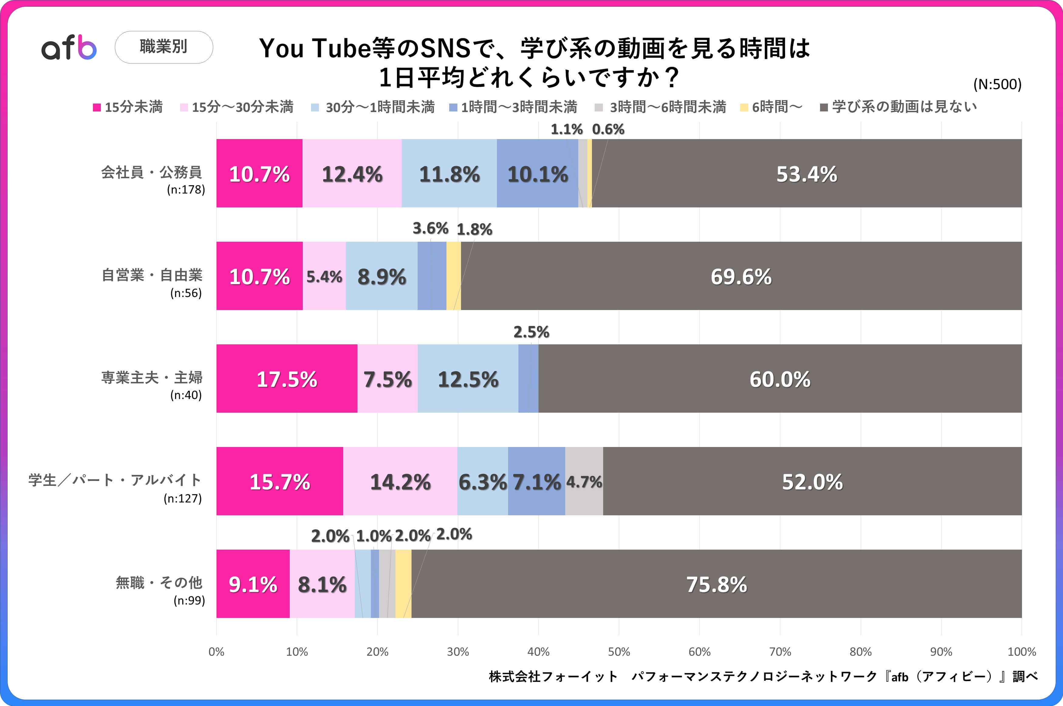 【質問:You Tube等のSNSで、学び系※の動画を見る時間は1日平均どれくらいですか?】