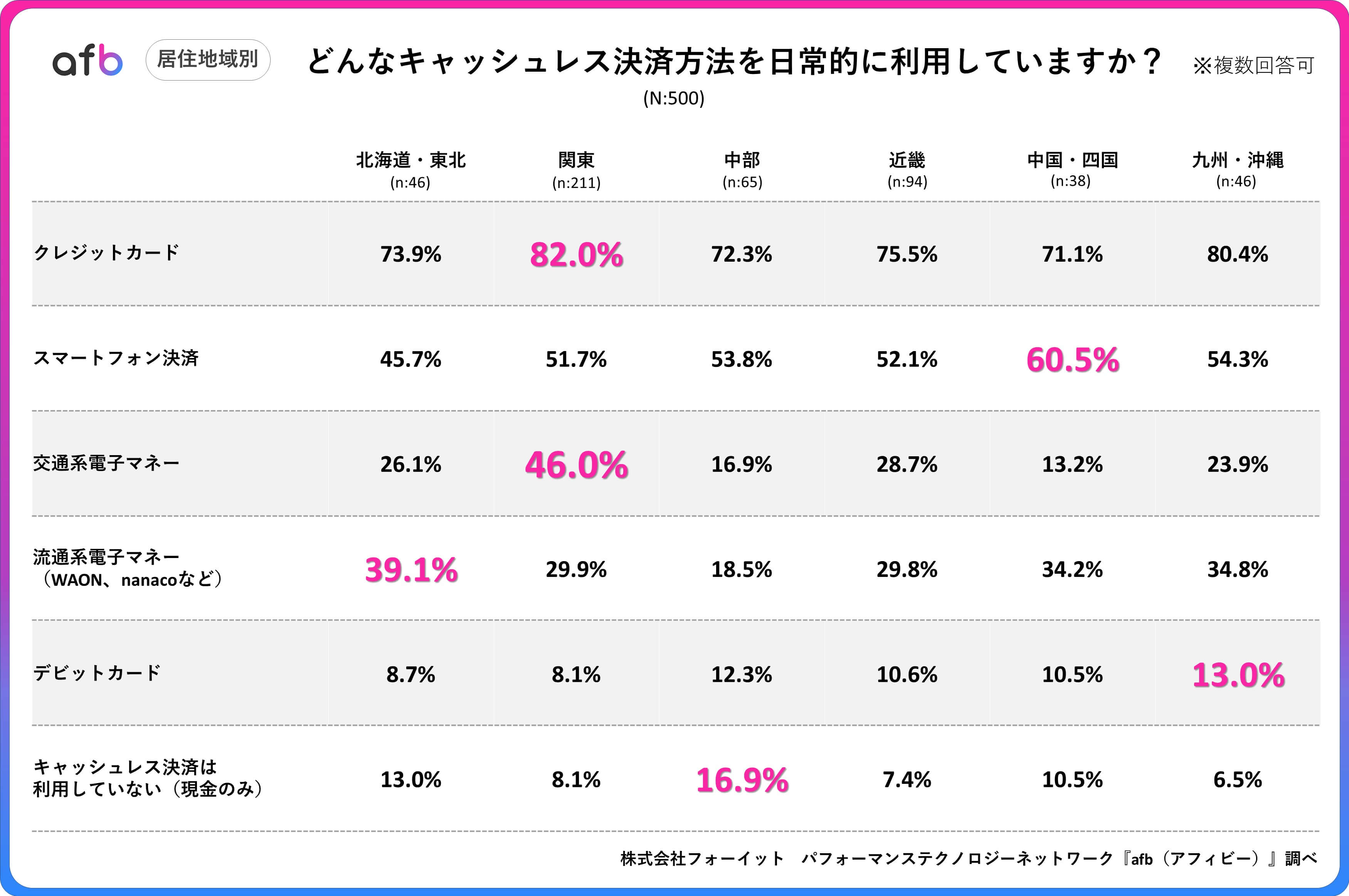 クレジットカードとスマートフォン決済は全国で普及も、交通系電子マネーは地域差が顕著に