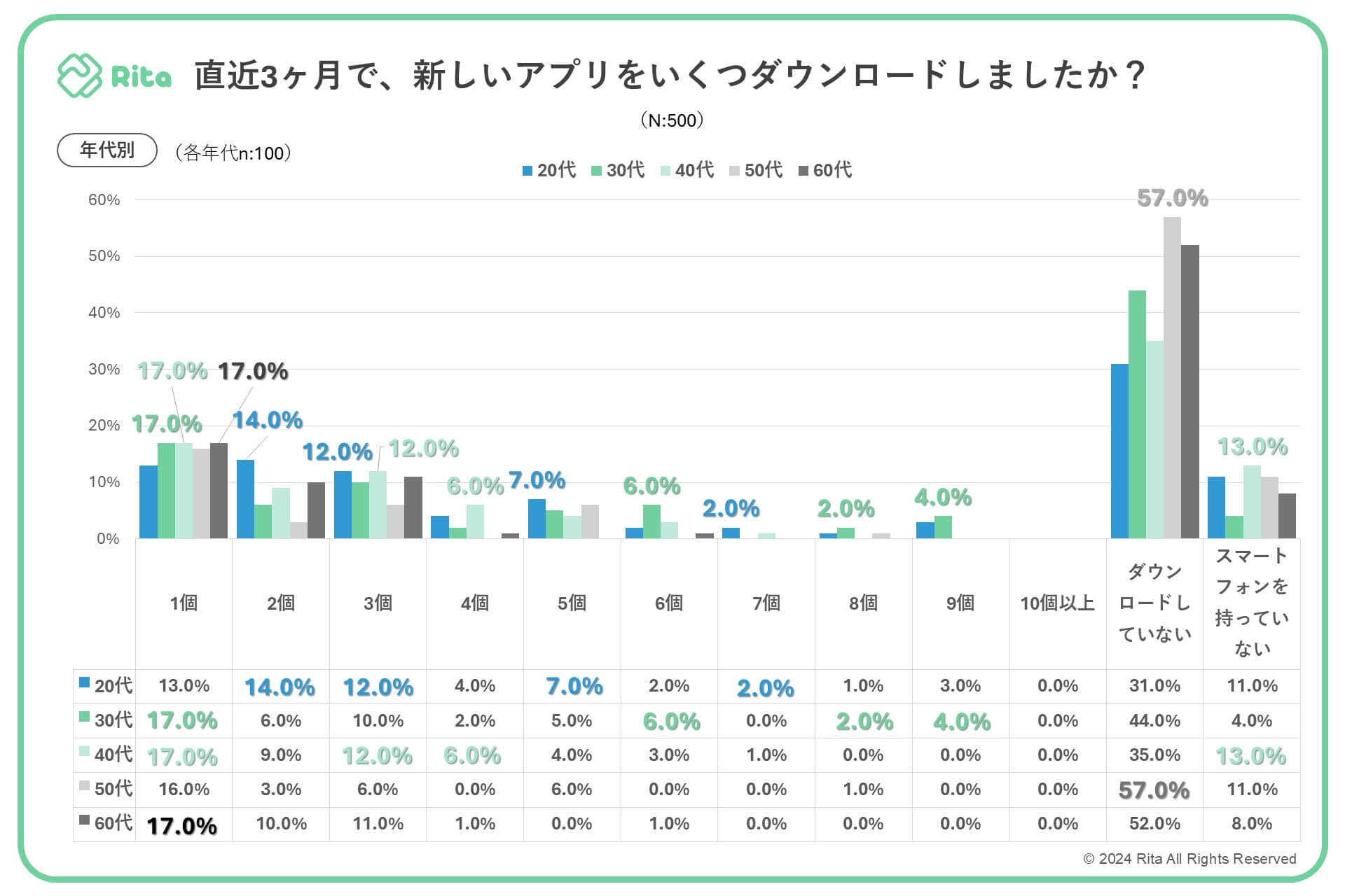 【質問:直近3ヶ月で新しいアプリをいくつダウンロードしましたか?】